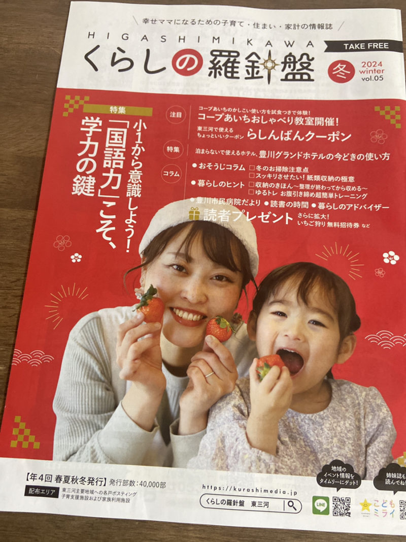 愛知県東三河(豊川市、豊橋市、蒲郡市、新城市、田原市)地域密着型、生活にお役立ち情報満載のフリーマガジン「くらしの羅針盤」。冬号が先日発行されました!